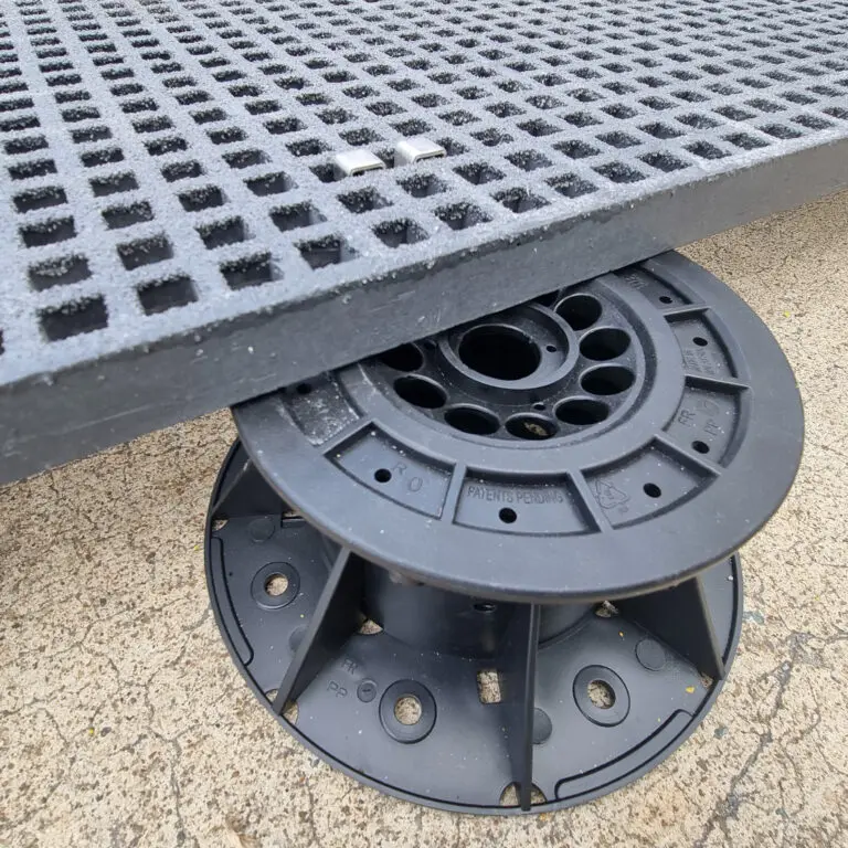 Adjustable pedestals for FRP moulded grating provide a versatile sup port solution, allowing for precise height adjustments to ensure level and stable installations on uneven surfaces.